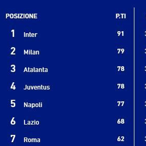 在本赛季意甲最后一轮开球前,国际米兰已经提前加冕联赛冠军,亚特兰大也锁定前四,只是排名未定。同分的那不勒斯与AC米兰手握冲击欧冠资格的主动权,而尤文图斯只能在全力争胜的同时期待对手犯错。