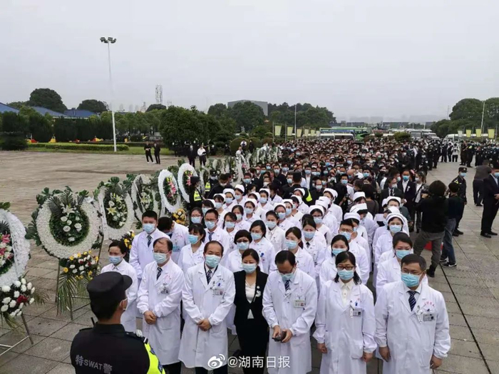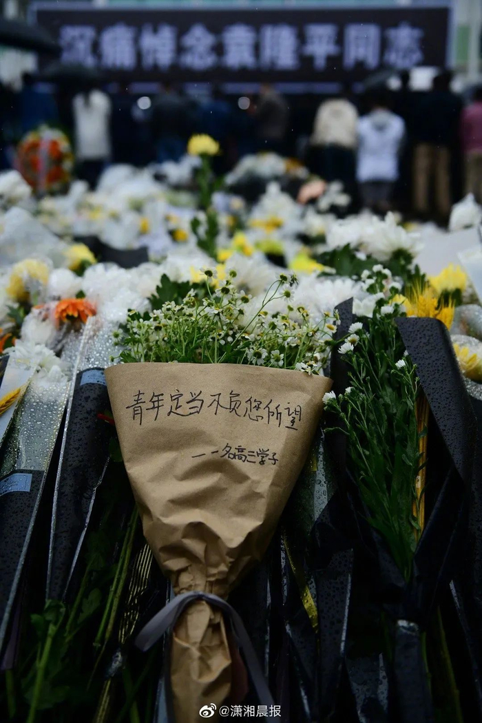 袁隆平同志的遗体安卧在鲜花翠柏丛中