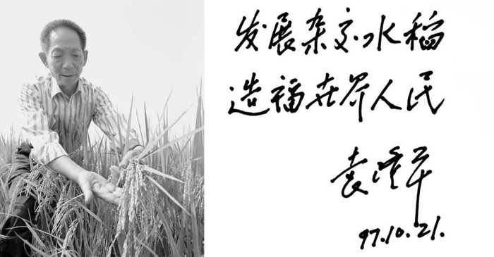 发展杂交水稻造福世界人民 1997年10月21日摄于长沙国家杂交水稻工程技术研究中心水稻试验田 摄影师:侯艺兵
