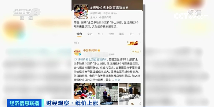 湖北省造纸协会秘书长 顿志强:市场上部分生活用纸产品出厂价上调了10%-20%。
