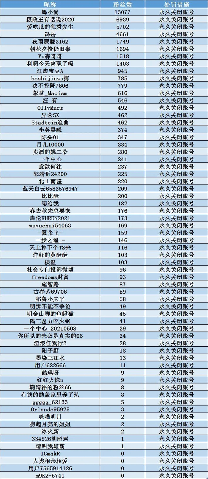 原标题:这些微博账号,永久关闭→
