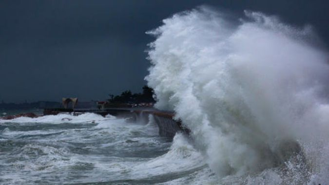 由于剧烈的大气扰动,如强风和气压骤变(通常指台风和温带气旋等灾害性天气系统)导致海水异常升降,使受其影响的海区的潮位大大地超过平常潮位的现象,称为风暴潮。