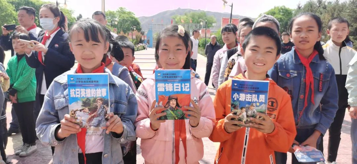 同学们一收到书籍,就迫不及待地翻阅起来,一边翻一边兴奋地交流着。“我最喜欢看英雄故事,你看我收到了一本《抗日英雄的故事》。”四年级的白静拿着新书爱不释手。