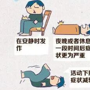 1. 双腿不适感迫使我们走动或活动,活动后不适感缓解,有时累及上肢或肢体的其余部分;