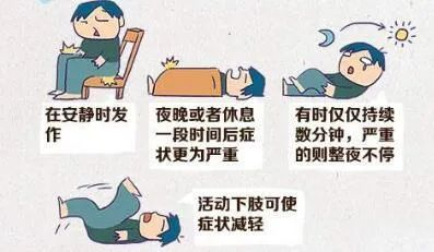 其主要以夜间睡眠时,双下肢极度不适感,强迫患者本人不停地活动下肢或下地行走,导致患者严重的睡眠障碍。这种不适感有“撕裂感”、“蠕动感”、“灼烧感”、“刺痛”、“瘙痒”或其他难以描述的异常感觉。其实门诊也时常遇到类似的病人,如果我们发现有以下几种表现,要高度怀疑是否患有该疾病:
