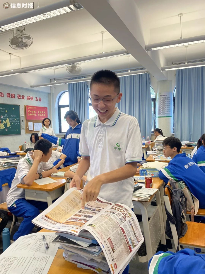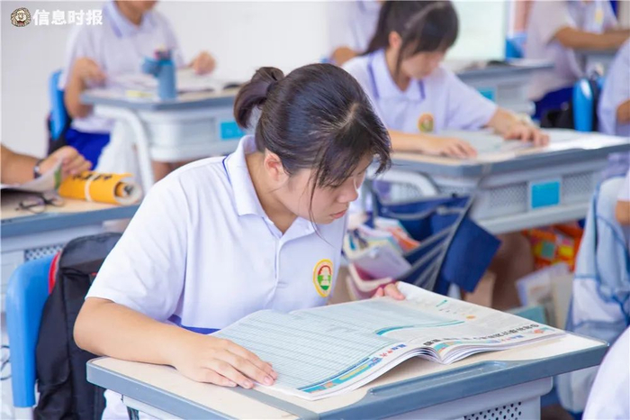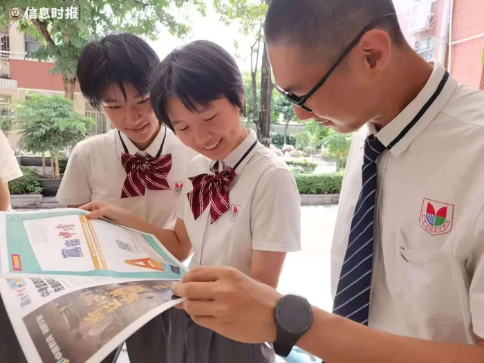 在华附,近400名学生人手一本《赢在中考》。一拿到手,学生们就认真地阅读起来。“今年是广州‘新中考’第一年,有这样一本信息丰富的特刊非常好,给予考生和家长较好的指导。”华附初三级级长周洁珍笑着说,“令我印象深刻的是T18版天河区教育顾问吴颖民的访谈,对学生填报志愿给出了中肯的意见。”