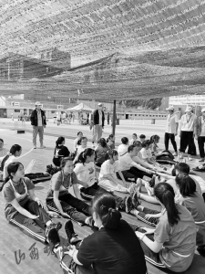 25日15时,日头正烈,太原市小店区一中考点外,很多家长探头向体育场内张望,想了解考场内的情况。领取到监督证后,山西晚报记者随太原市教育局工作人员进入内场。检录区,专门搭的凉棚下,考生们正进行着热身运动,工作人员认真核对每位考生的信息,并告知各项目注意事项。