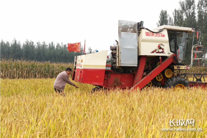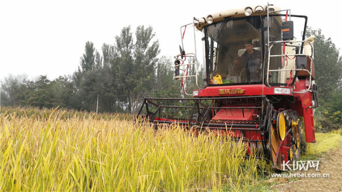 2017年,旱稻在阜城县试种成功并进行收割。