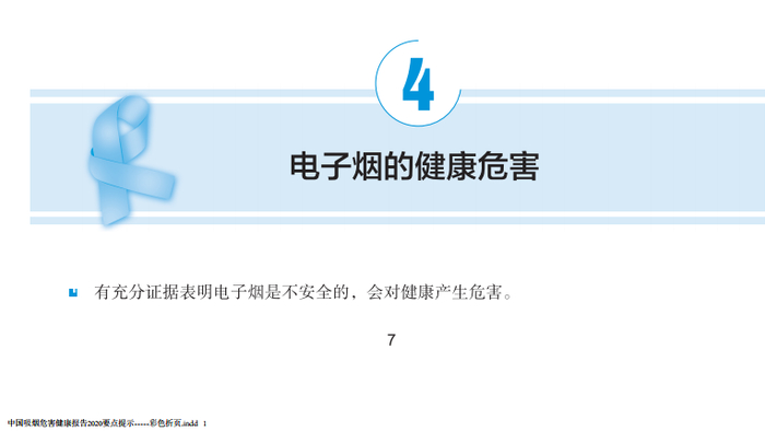 《中国吸烟危害健康报告2020》指出,“有充分证据表明电子烟是不安全的,会对健康产生危害”。