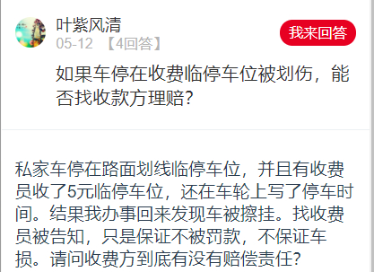根据侵权相关法律规定,赔偿主体应当为侵权人而非收款方。路边车位与停车库二者的性质决定了对车辆安全的注意义务不一样,从司法实践中,即使你找收款方赔偿,但赔偿比例不会过高,不超过30%