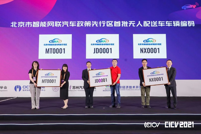 5月25日,智能网联汽车技术年会在北京召开。北京高级别自动驾驶示范区发布无人配送车管理政策,颁布《无人配送车管理实施细则》试行版。会上,美团、京东、新石器成为国内首批获得无人配送车车身编码企业,并准许在示范区公开道路行驶测试,率先实现无人配送车“持证上岗”。