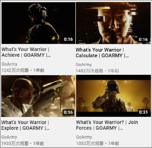 5月初,美国军队征兵招募官网及其油管账号“GoArmy”发布系列征兵广告《呼唤》(《TheCalling》)。据发布的视频显示,这个系列的征兵广告由五部动画短片组成,每部时长不到3分钟,分别讲述了五位美军士兵的成长故事以及参军心路历程。