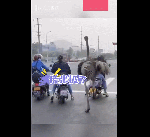 一只高大的鸵鸟在街头奔跑引起众人围观,