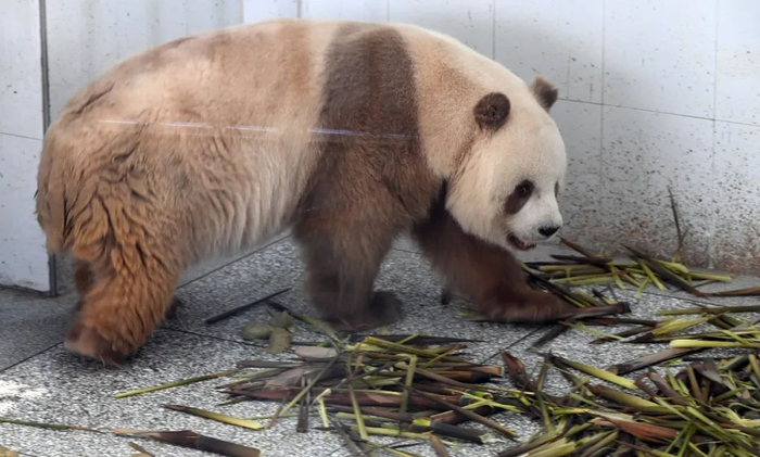 在这里记者还见到了世界唯一的棕色大熊猫“七仔”,它当时正趴在地上小憩。远看它背部的棕色皮毛,如同一件棕色的马甲套在身上很是别致。工作人员说,这几只大熊猫适应得最快,它们现在每天都吃饲料,包括新鲜的竹笋、竹子和水果,都是从秦岭里现运过来的,因为天气较热,大熊猫午后就不愿意活动,大都会找一个舒适环境休息。后续大熊猫的阵容会逐渐扩大,开园后,园区内将会有10到15只大熊猫与公众见面。