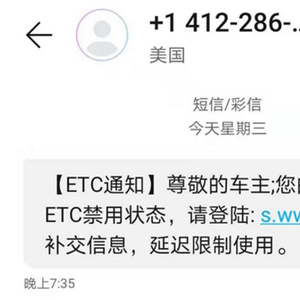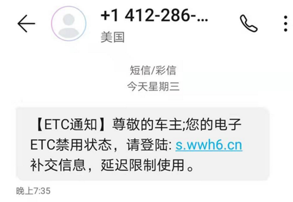 原标题:你收到“ETC禁用”短信了吗?假的!