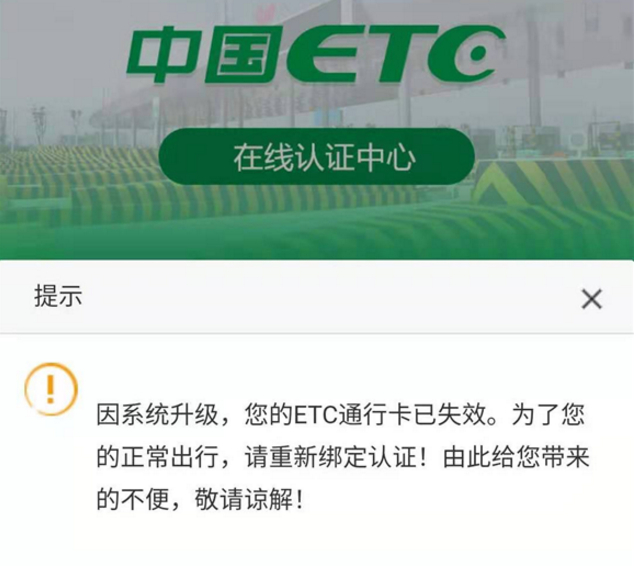 ETC不存在过期再认证,针对“ETC认证失效”类的短信是骗子群发的钓鱼短信,短信中的链接是骗子用来套取个人信息,盗取卡内资金的手段。