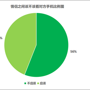 近日,中国青年网校园通讯社针对“情侣之间该不该看对方手机”话题,面向全国918名大学生展开问卷调查,结果显示,有513名大学生表示不应该看,占比56%,有405名大学生表示应该看,占比44%。