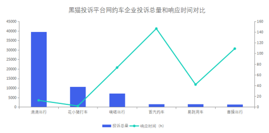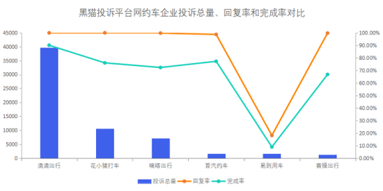 黑猫投诉网约车企业投诉数据对比:曹操出行完成率低于滴滴出行