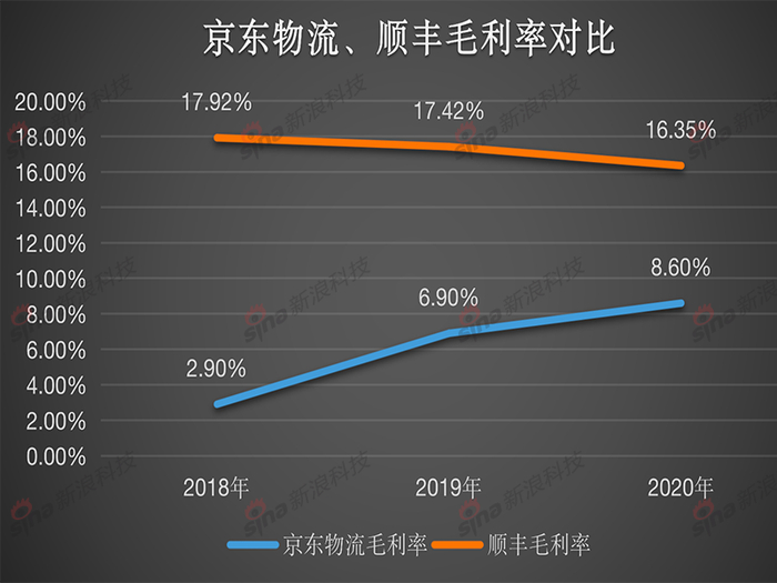 相比较老大哥顺丰,京东物流还将大幅扩张阶段,参与营运的员工数量由截至去年3月底的约17万人,大幅增至截至今年3月底的约26万人。此外,集团亦增加了仓库面积、综合运输线路数量及其他物流基础设施。招股书指出,预计今年首季毛利率将远低于2020年同期。