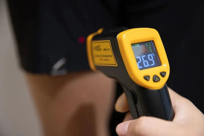 用温枪测试,普通T恤的温度为30.3°C,而V5科技T恤为26.9°C,还未上身温度就已经低了3.4°C。