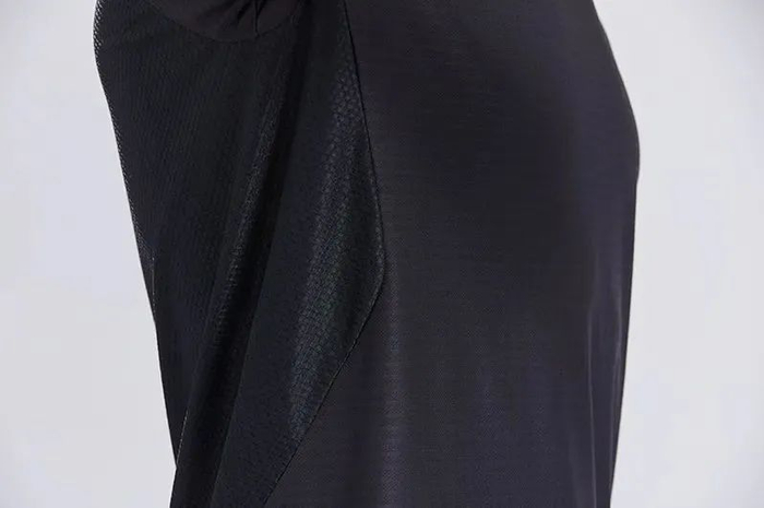 而且,T恤的负压导风版型,能够将身体运动时产生的负压加成,让更多的外部空气由下往上导入,形成更强的热对流效应,让身体感受到更加凉爽与舒适贴合。