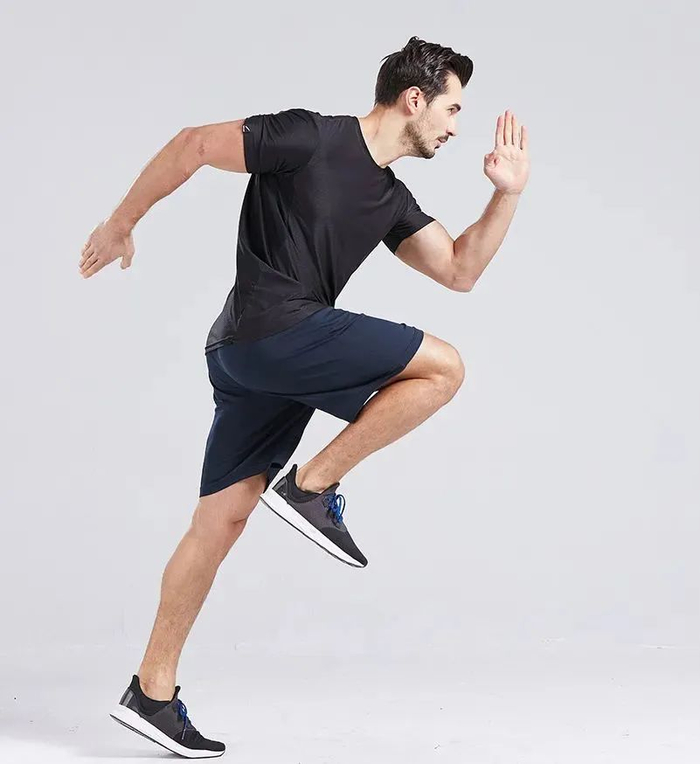 T恤采用的四面高弹面料,使得衣服的弹性很棒,即使做大幅度的动作也不用担心衣服会被拉扯撕裂。