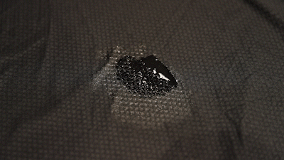 除此之外T恤外层的蒸发速度也是相当令人惊喜的,我们将一小杯水倒在T恤上,用纸巾连续擦拭三次,就可以看到,体恤差不多已经干透了。