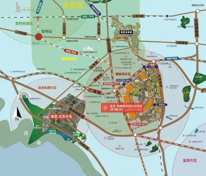 新螺蛳湾的区位优势毋庸置疑,其所在位置恰处于昆明主城与呈贡新区间的核心位置。公路方面,昆玉高速,南绕城线,昆石高速互相贯穿,通过彩云北路、广福路与昆明主城区链接四通八达。毗邻南部汽车客运站、公交总站、国际长途客运站、云南省旅游大巴集散中心,并直接连接昆明轻轨1号线、4号线,30分钟可达昆明长水国际机场。发达的交通为商贸城带来持续稳定的客流、商流,各类优质资源也在此实现互补、聚集、合作。