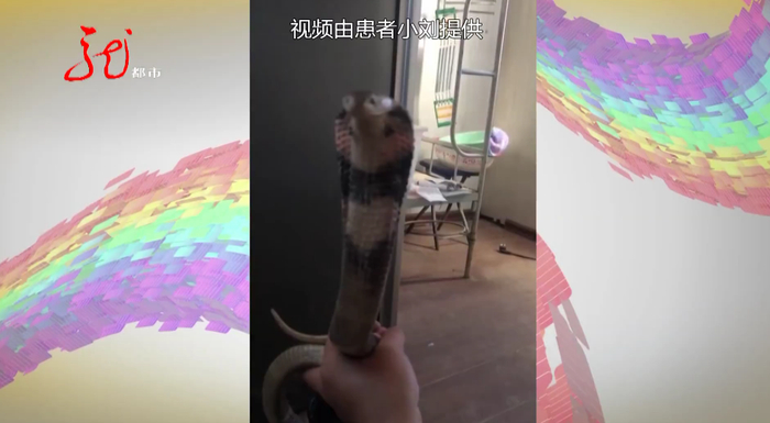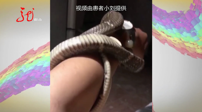 这条眼镜蛇,是他刚从网上买来的,有一米长。小刘拿它当宠物,但这条蛇可一点儿没惯着小刘。