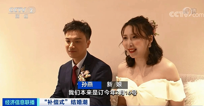 新娘孙燕:我们本来订2月份,但是因为疫情又推迟到5月份,像5月1日这样的黄金日期去年就已经订掉了。