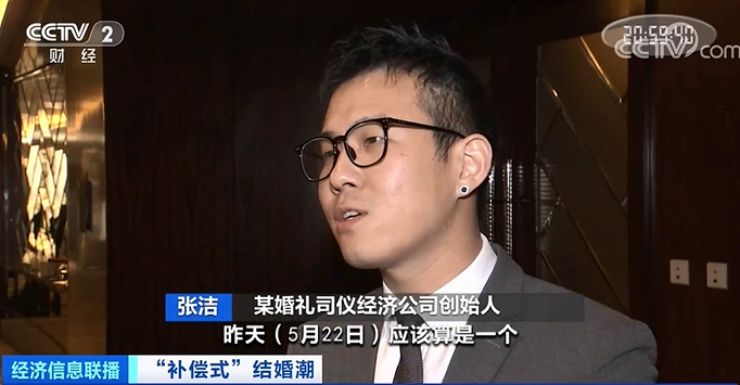 某婚礼司仪经济公司创始人 张洁:5月22日应该算是一个全国爆单日,这一天我们总共执行了主持的场次有212场,去年我们整个团队有150位主持人,现在我们有258个主持人,并且在各个城市,包括杭州、宁波、常州、苏州、三亚这些城市,主持人的数量还在不断增加。