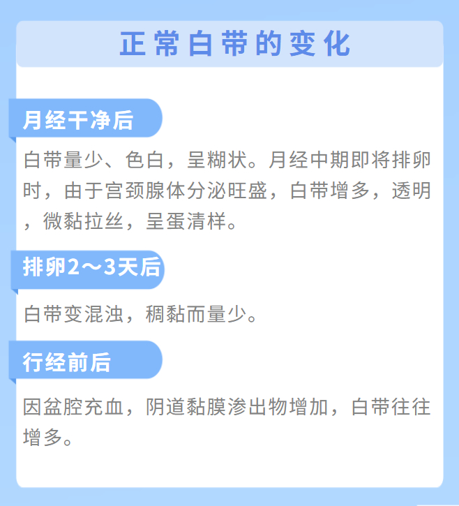 实际上白带的性状随月经周期而改变,并不是长一个样子。所以,千万别动不动就说自己白带异常!