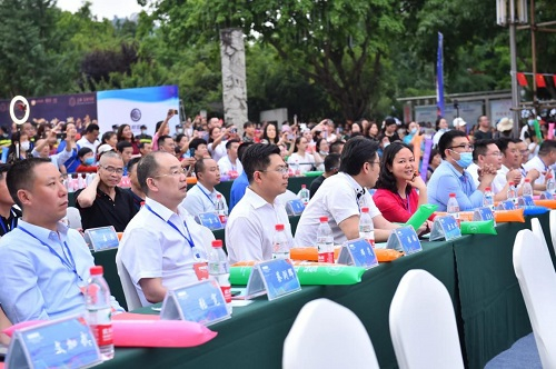 在运动员代表和裁判员代表进行庄严宣誓后,国家体育总局社会体育指导中心党委委员、一部主任,全国广场舞健身活动推广委员会秘书长余汉桥宣布:2021中国美丽乡村广场舞大赛(四川·射洪站)正式开幕 。