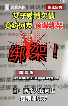 最近,绍兴越城警方在工作中发现,95后女子伍某去年接触网络博彩,一直亏钱,欠下二十多万。为了能一夜暴富,她在网上找到了同样欠很多钱的网友袁某,打算绑架一位美肤店老板。两人在网聊中谋划买一个变声器,准备刀等作案工具,被网警锁定。就在两人进行踩点时,被早已埋伏的民警逮了个正着。目前,两人被刑事拘留。
