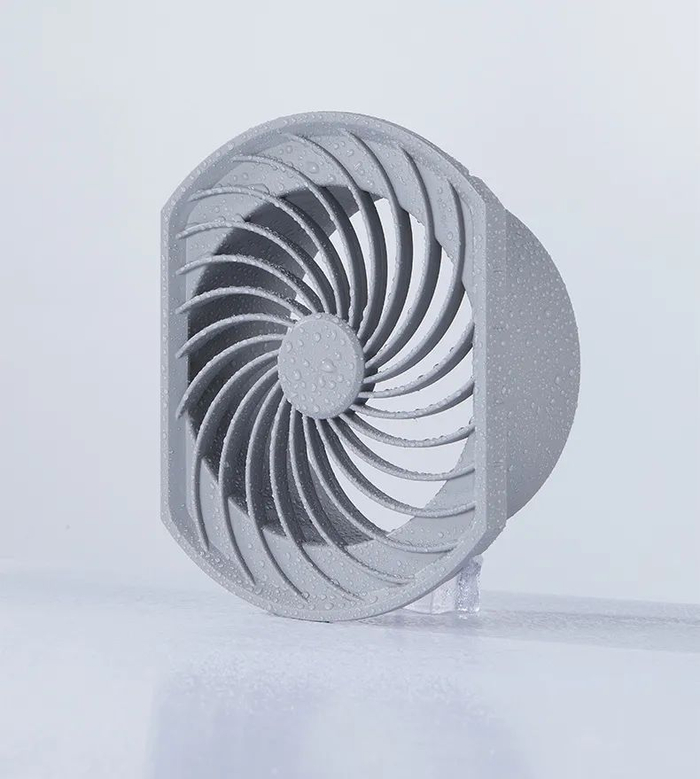 它的设计参考了潜水艇螺旋桨的扇叶结构!扇叶的尖角经过R10倒角,扇叶几乎占出风口面积的50%,保证了最大的出风量。