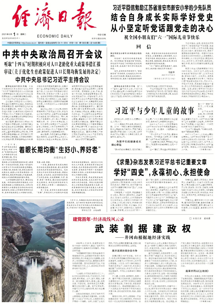 《经济日报》聚焦百年来中国共产党人的经济探索、斗争实践、辉煌成就和建设经验,做到学史明理、学史增信、学史崇德、学史力行,以昂扬姿态奋力开启全面建设社会主义现代化国家新征程。
