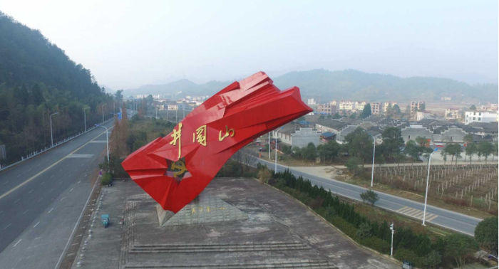 通往井冈山的泰井高速连接线旁的“井岗红旗”雕塑。周密摄(新华社)