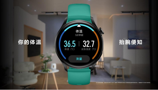 华为WATCH 3系列新增高精度温度传感器,在室内常温(15℃~35℃)、静止、紧佩戴的场景下,检测手腕皮肤温度并估测体温,当出现体温异常时,也会及时提醒。