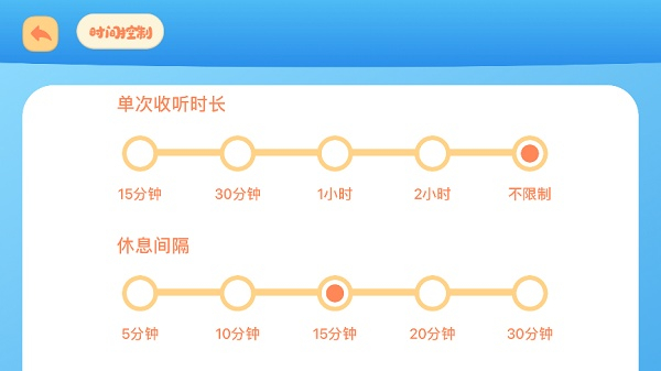 家长可以设置每日收听时长上限、休息间隔,有效防止孩子沉迷;少儿版内没有消费入口,没有付费、打赏功能;任何设置(包括退出少儿版),都要通过图案密码验证。