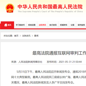 央广网北京6月1日消息(记者 苗雁)5月31日,中国最高人民法院对外发布互联网十大典型案例。目的是打击互联网侵犯知识产权犯罪,遏制互联网侵权行为,保障互联网经济健康有序发展。