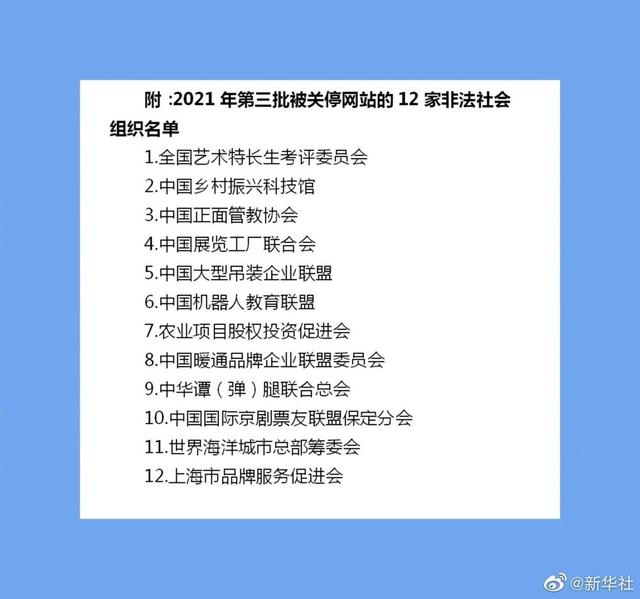 2021年第三批!民政部关停12家非法社会组织网站