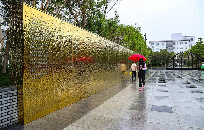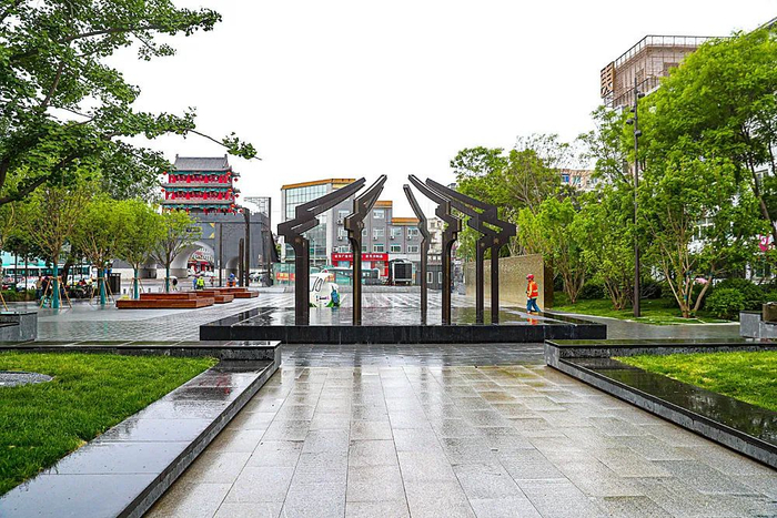 《会客之仪》口袋公园位于大东路历史文化片区东侧,取抚近门礼仪之门含义。此处绿地占地8800平方米,建于2011年,原有树木300余株。