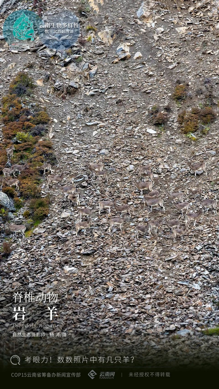 原标题:【云南生物多样性数字化百科图谱】脊椎动物•岩羊:来数数照片中有几只羊?