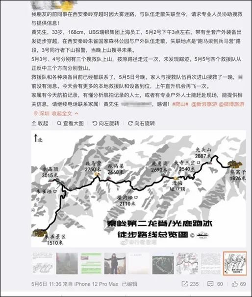 徒步穿越秦岭失联一事