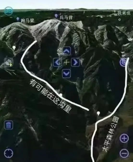 救援人员推测,黄埔江很可能身陷下图标出的山沟里。由于山沟内地形复杂,且完全没有手机信号,搜救工作难度很大。
