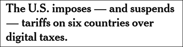 报道提到,就在美国作出这一决定之际,多国正试图就一系列国际税收问题通过经合组织进行谈判;七国集团(G7)财长也正准备于4日和5日在伦敦举行会议,讨论国际税收谈判的情况,其中就包括大型科技公司的数字服务税问题。路透社分析称,美国在此时宣布征收报复性关税,显然是一种威胁的手段。