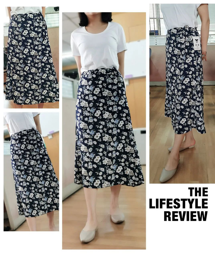 但雪纺半身裙不一样,上身效果呈现一个小A型,露出一截细细的脚踝,显瘦显高的同时,又能很好地修饰腿型。