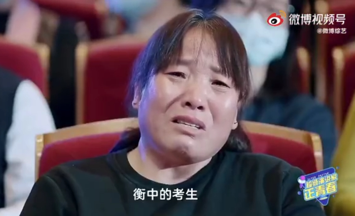 可以看到节目现场,张同学的妈妈边听演讲边落泪,有不少观众也被演讲感染,眼睛湿润了。