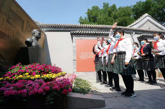6月1日上午,位于西城区的李大钊故居经过布展提升正式对外开放。来自西城区鲁迅中学、北京第二实验小学涭水河分校、北京第一实验小学的在校师生成为首批观众。沉浸式演出《播火者》在李大钊故居内上演,通过真实的历史场景,考究的原状陈列,演员的精彩演出,将小观众们带回到一百年前,感受那段激情澎湃的革命岁月。李大钊曾孙女李晓莉与中小学生一同度过有意义的“六一”国际儿童节。据了解,李大钊故居正式对外开放后,将通过官方公众号实现网上预约,免费参观。