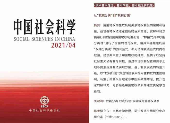 原标题:蔡立东教授发表原创性文章《从“权能分离”到“权利行使”》